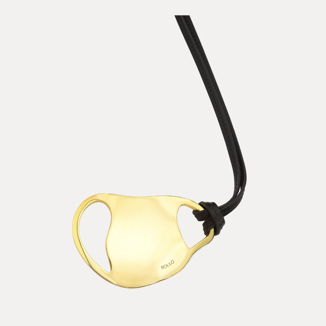 An effortless statement. A sculptural gold-tone abstract buckle intertwines with a 2m dark brown calf leather strap, stitched with precision and matching thread for a modern edge. Versatile by design, can be worn with jeans, tailored trousers, or over a dress.