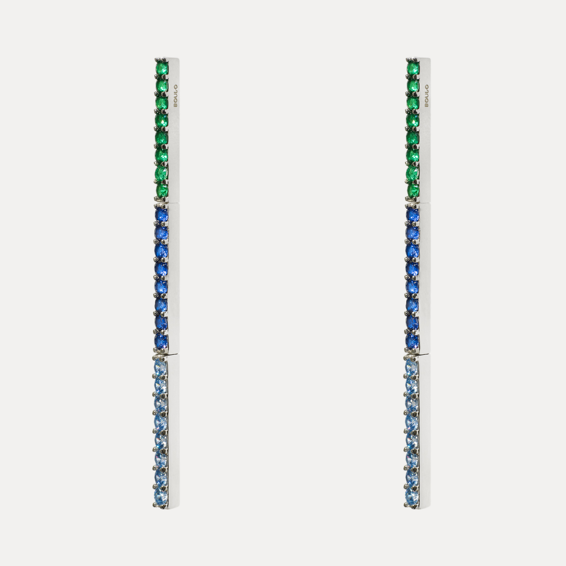 The Long Story in silver from BOULO offers a modern twist on classic elegance. Its elongated form is meticulously crafted, showcasing sleek lines and a lustrous silver finish, ideal for complementing any look, especially evening gowns. The minimalist design radiates refined style, making it a flexible choice for both day-to-day and formal settings.