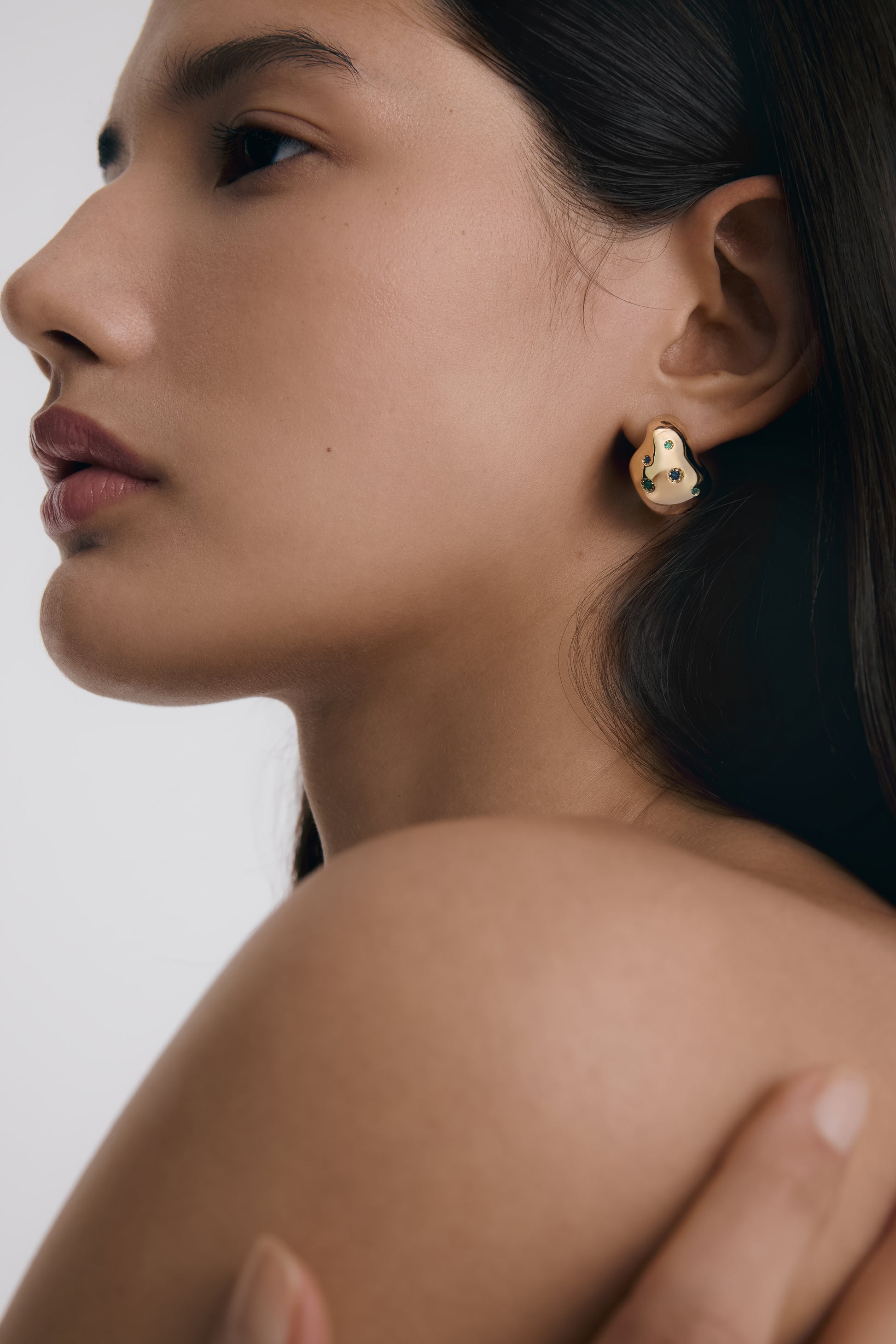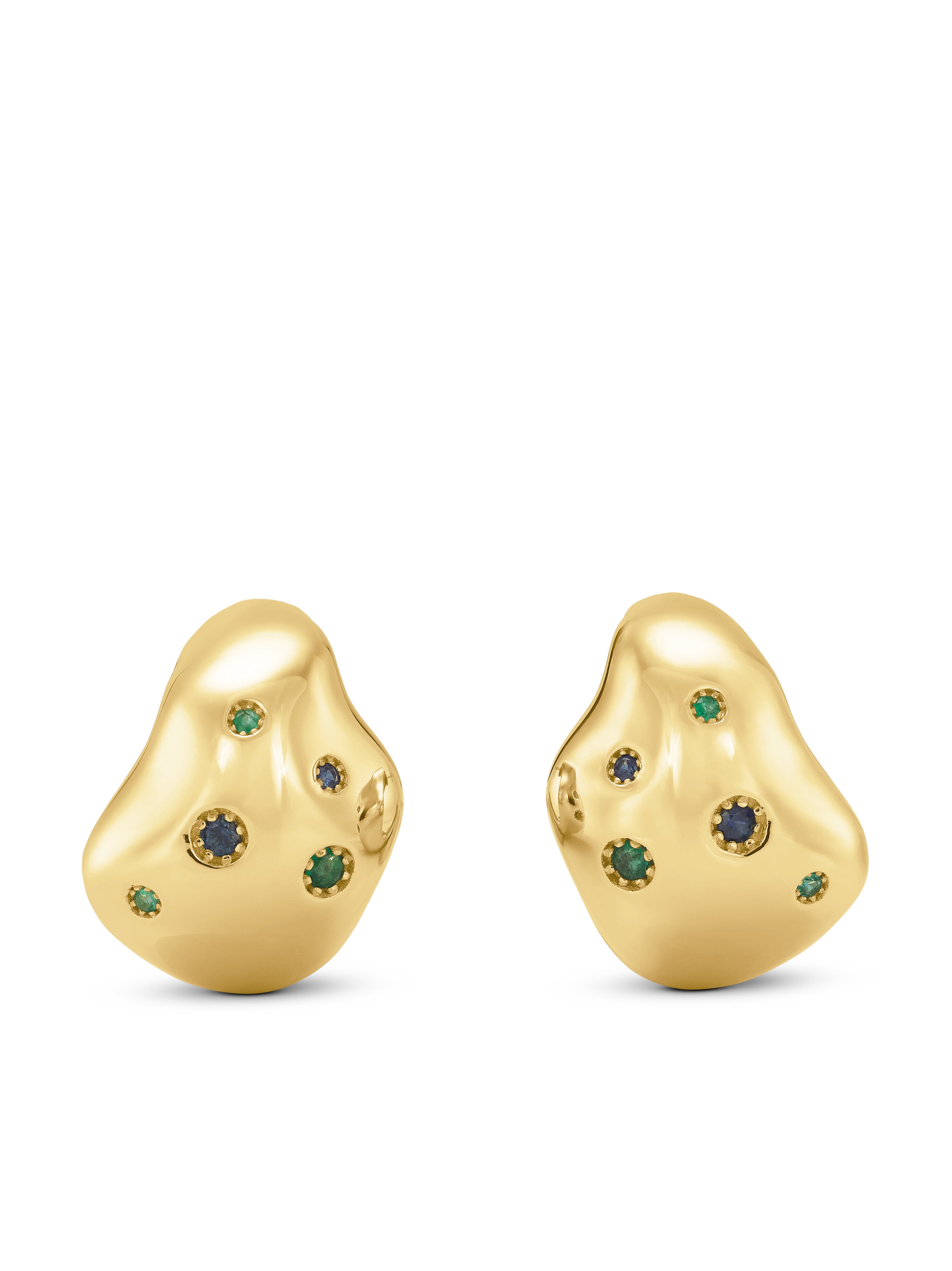 The Shapeless Hoop in Emerald and Sapphire reimagines the classic hoop through BOULO's signature unstructured form. Softly contoured gold holds flashes of green and blue, set like natural accents. The result feels fluid and intuitive, with colour appearing as the piece moves. Comfortable and easy on the ear, it's designed for everyday wear while remaining distinctly expressive. A modern fine jewellery piece that celebrates individuality through colour, form and thoughtful design.