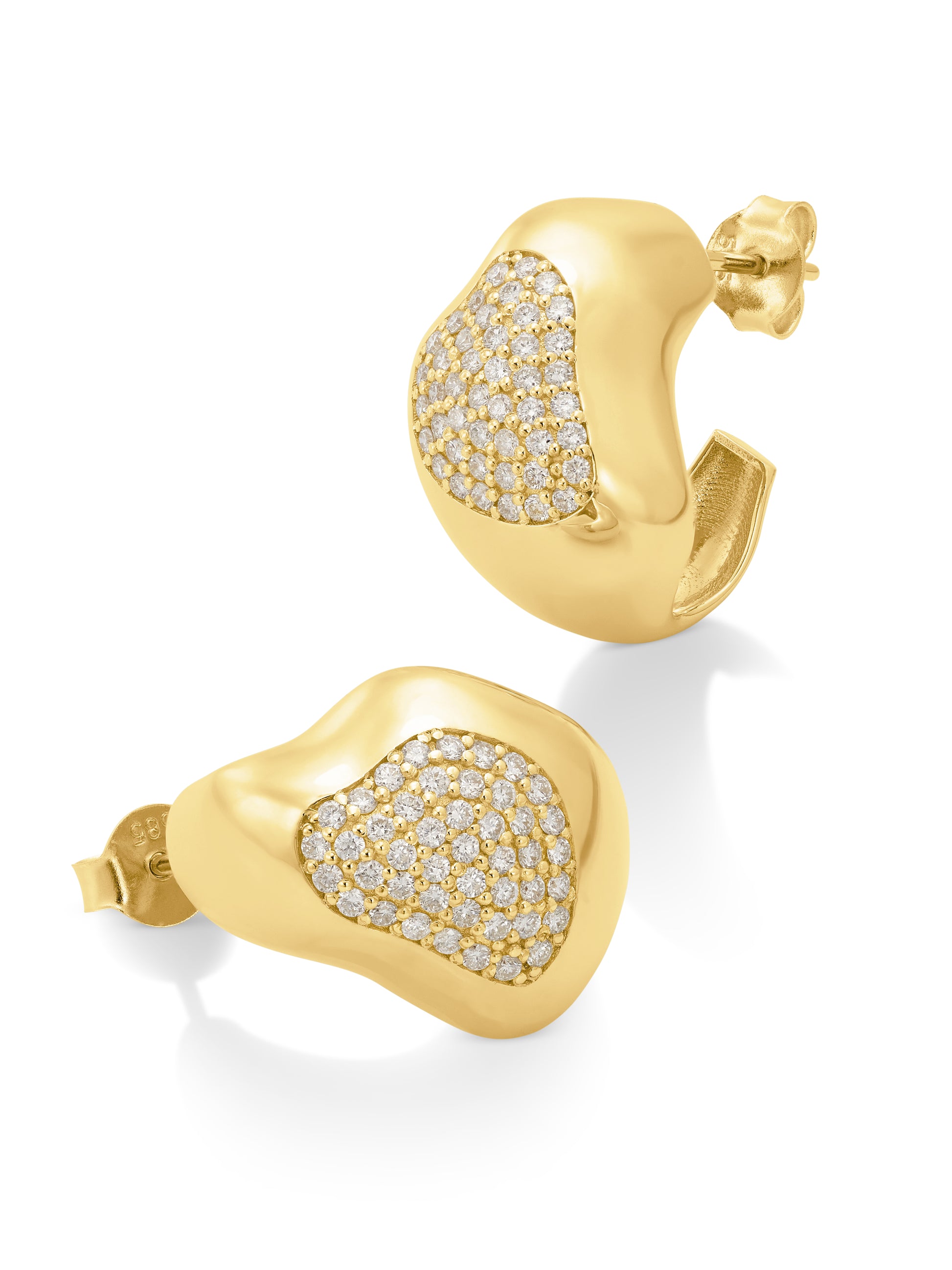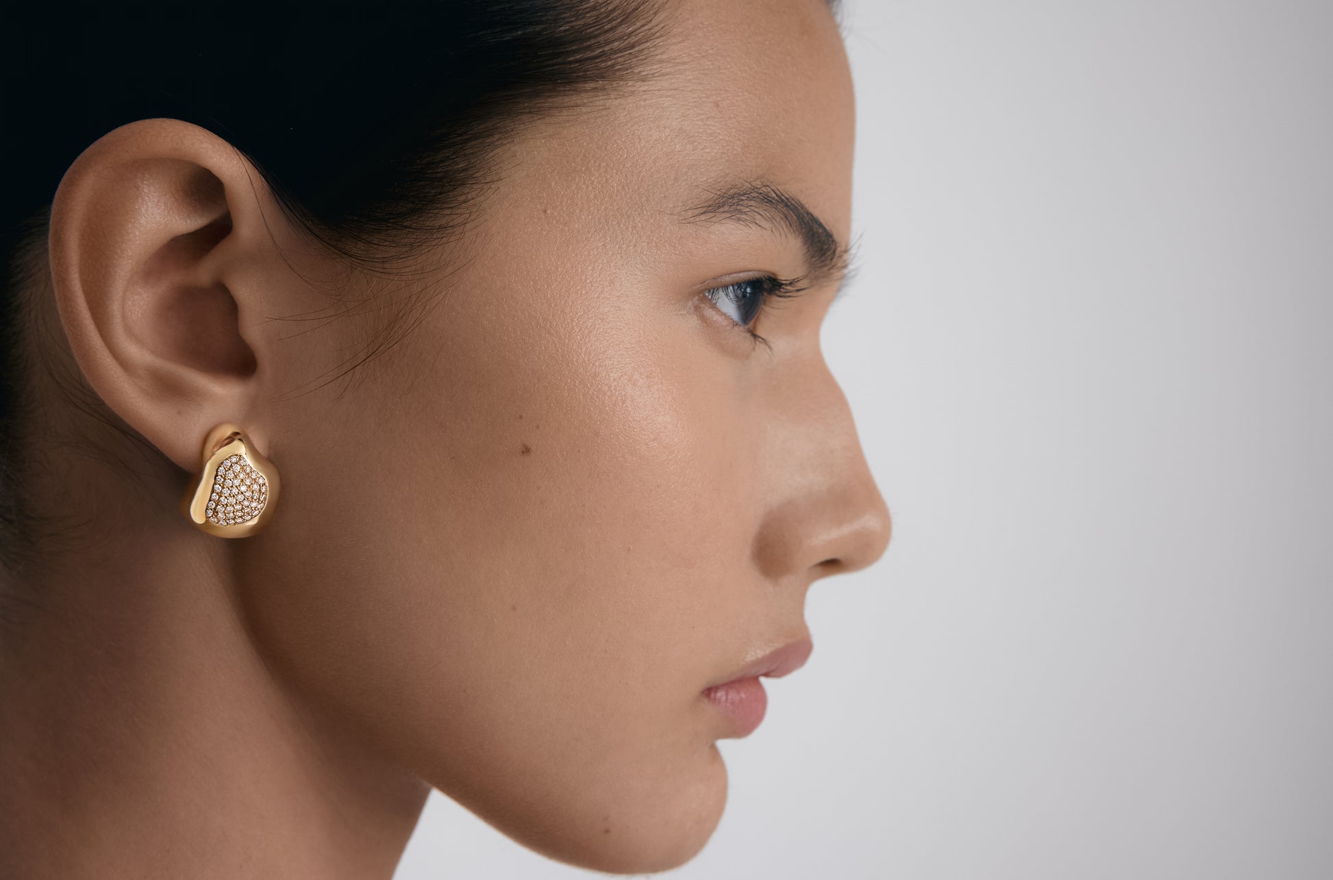 The Shapeless Nest Hoop with diamonds introduces a more luminous expression of BOULO's signature design. A softly contoured gold form frames a pavé-set diamond nest, creating depth through contrast and texture. The diamond sit recessed within the gold offering generous light. Balanced and comfortable to wear, the hoop feels both polished and relaxed. A refined yet expressive piece that blends BOULO's signature design with subtle brilliance, designed for those who are drawn to quietly confident presense.