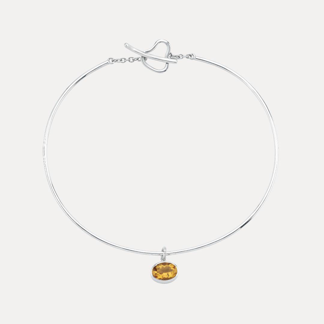 A bold statement with radiant energy. A 10×14mm oval-cut citrine, glowing in its vivid golden hue, sits in a sculptural polished silver cave, catching the light from every angle. Effortlessly striking, it commands attention, moving seamlessly from special occasions to understated casual wear.